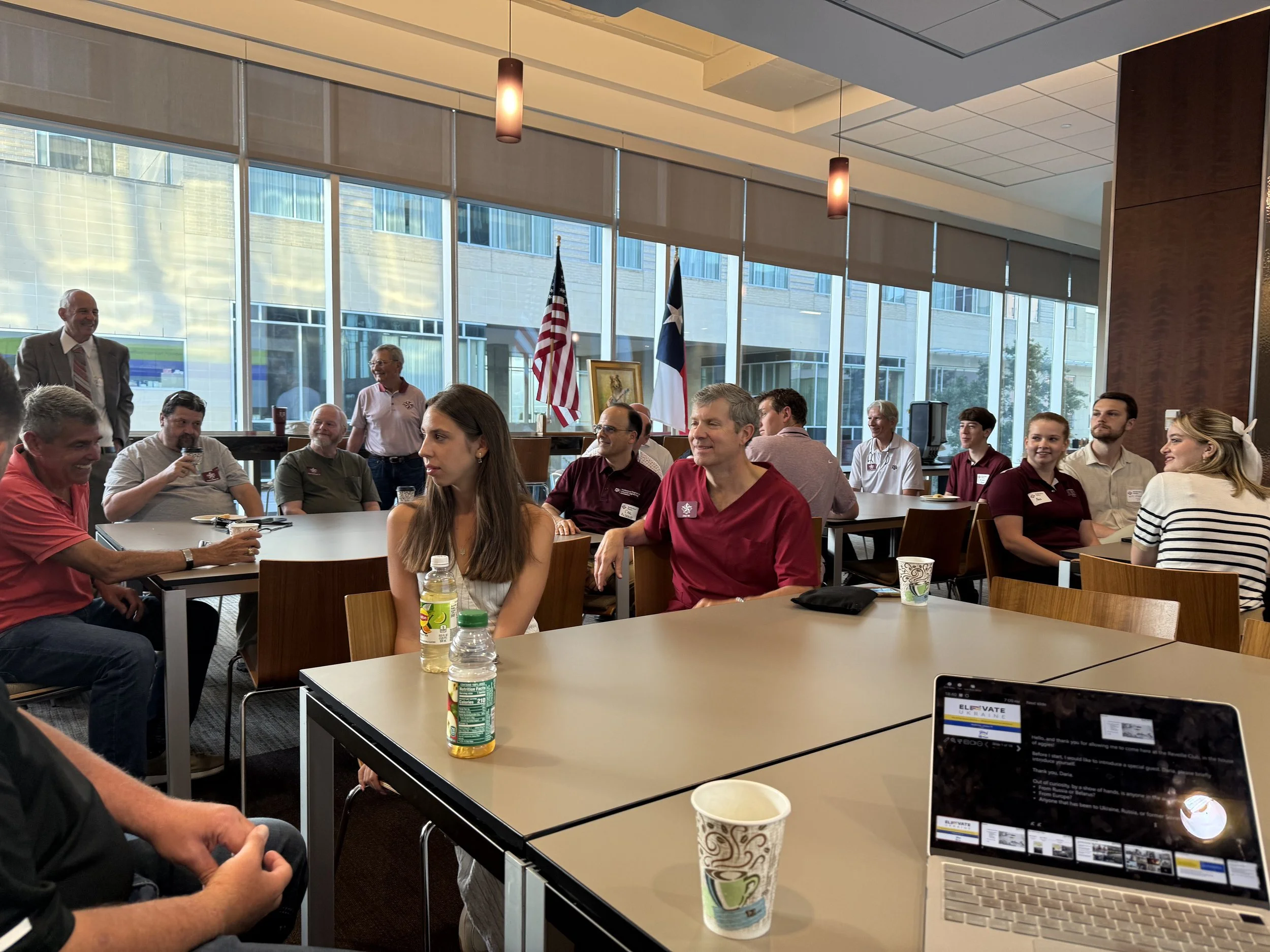Elevate Ukraine CEO Radu Filip and Communications Manager Daria Rogova had the honor of presenting to the Reveille Club of Houston, a network of Texas A&M Mays Business School alumni.